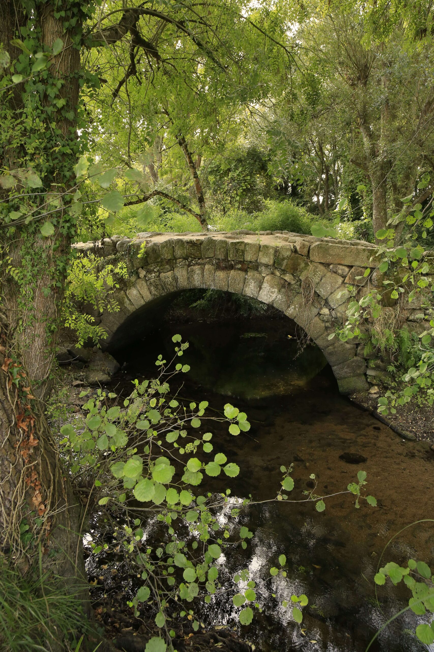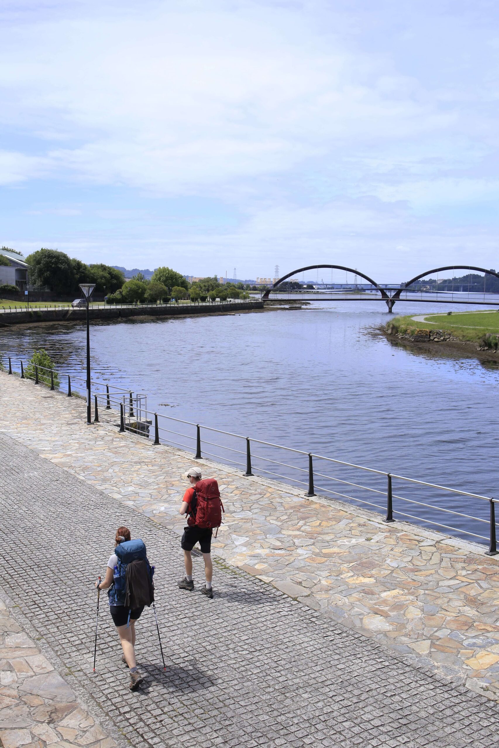 Ambas sendas confluyen en el albergue de Bruma, en el municipio de Mesía, un enclave histórico de acogida de peregrinos. Desde allí, la ruta prosigue por Ordes y Cerceda, localidades marcadas por su tradición agrícola y su paisaje rural, entre bosques de castaños, eucaliptos y robles. El recorrido se acerca a Compostela a través de Oroso, atravesando el río Tambre por el puente medieval de Sigüeiro, para desembocar finalmente en la ciudad del Apóstol.